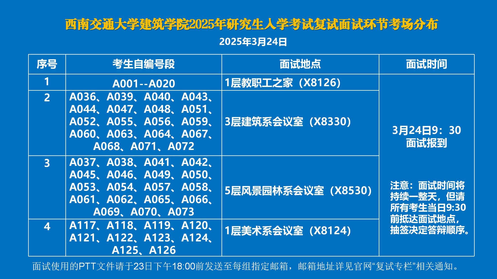上一篇: 【考研复试通知6】3月25日面试环节考场分布及提交面试用PPT的通知