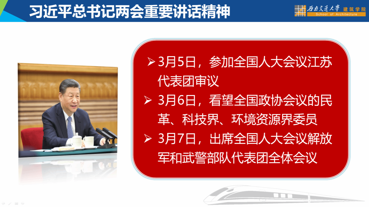 党委副书记刘一杰带领与会教师共同学习了习近平总书记在全国两会期间参加全国人大会议江苏代表团审议,看望全国政协会议的民革、科技界、环境资源界委员,以及出席全国人大会议解放军和武警部队代表团全体会议时发表的重要讲话精神。会议强调,学习贯彻全国两会精神是当前一项重大政治任务。全院师生要坚持以习近平新时代中国特色社会主义思想为指导,把学习贯彻两会精神与学习贯彻习近平总书记关于教育的重要论述和党的二十大精神结合起来,深刻领悟“两个确立”的决定性意义,增强“四个意识”、坚定“四个自信”、做到“两个维护”,牢牢把握“人才培养”中心工作,担当起科技创新的重任,以发展新质生产力引领学院转型高质量发展。
