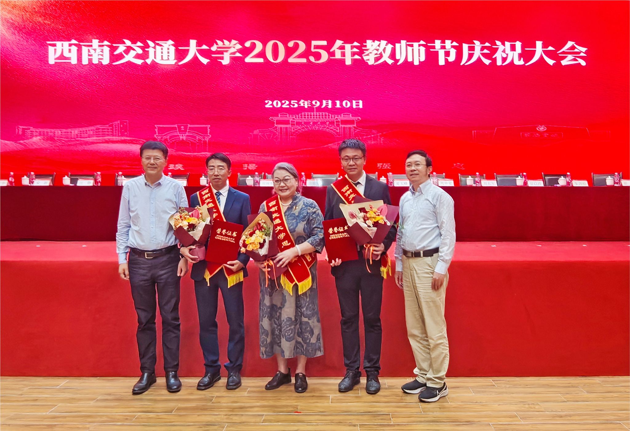 在九里校区国际会议厅隆重举行教师节庆祝大会,表彰在教书育人等各方面取得突出成绩的先进集体和优秀个人。