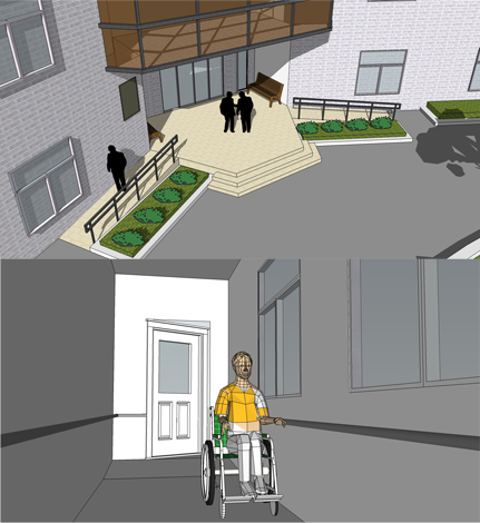 6月1日至4日,大家以小组为单位根据调研的成果进行了相关理论资料的收集整理,并针对调研中发现的种种问题提出优化设计方案,以图纸的形式对建筑内部的无障碍设计,建筑细部的人性化设计等提交了此次活动的成果。