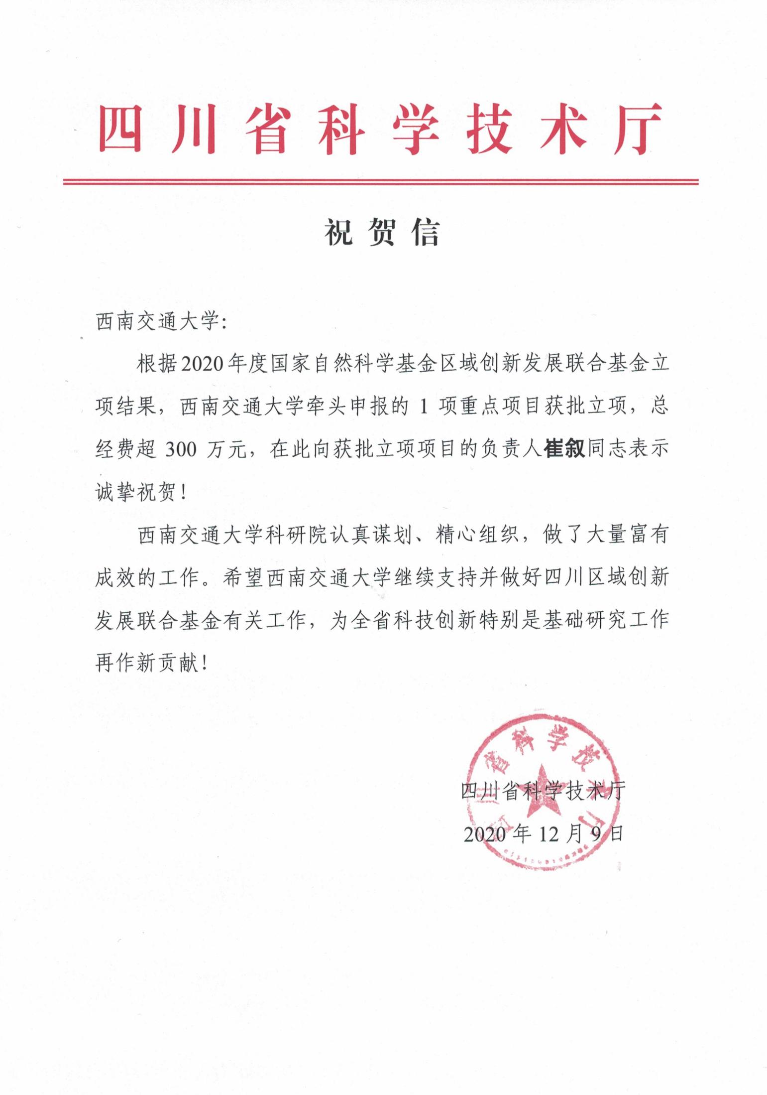 根据国家自然科学基金委员会和四川省科技厅通知,18comic 崔叙教授主持的“交通综合体与城市关联效应及效能优化方法研究”获批国家自然科学基金区域创新发展联合基金重点项目,实现了18comic 国家自然科学基金重点项目的突破。