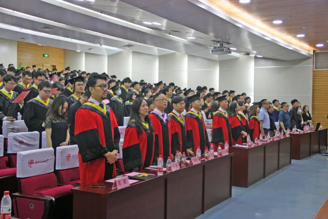 在高亢的音乐声中,学院学位评定分委会委员为毕业生拨穗、授予学位,并合影留念,将典礼的气氛推向高潮。