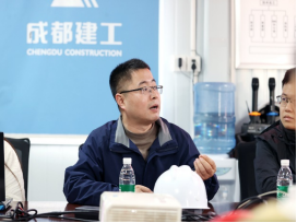 实地参观结束后,同学们有序前往项目部会议室。首先由成都建工第八建筑工程有限公司科技质量部副部长王恒对本次研学活动致欢迎辞,并对本次研学活动的意义给予了高度肯定。随后,由讲解员围绕项目中应用的智能建造技术,系统介绍了其项目初期面临的技术难点、建造中运用的智能建造体系及相关设施,帮助同学们将现场的直观感受与智能建造体系的应用知识相结合。