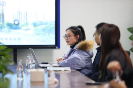 下午2:30,同学们抵达项目部。简短的流程介绍后,大家齐聚会议室观看项目宣传片。随着镜头推移,一座融合TOD理念与工业化建造的大型综合交通枢纽渐次呈现,“精益、智慧、绿色”的企业建设理念在光影交错中直抵人心,为后续学术交流奠定直观认知。