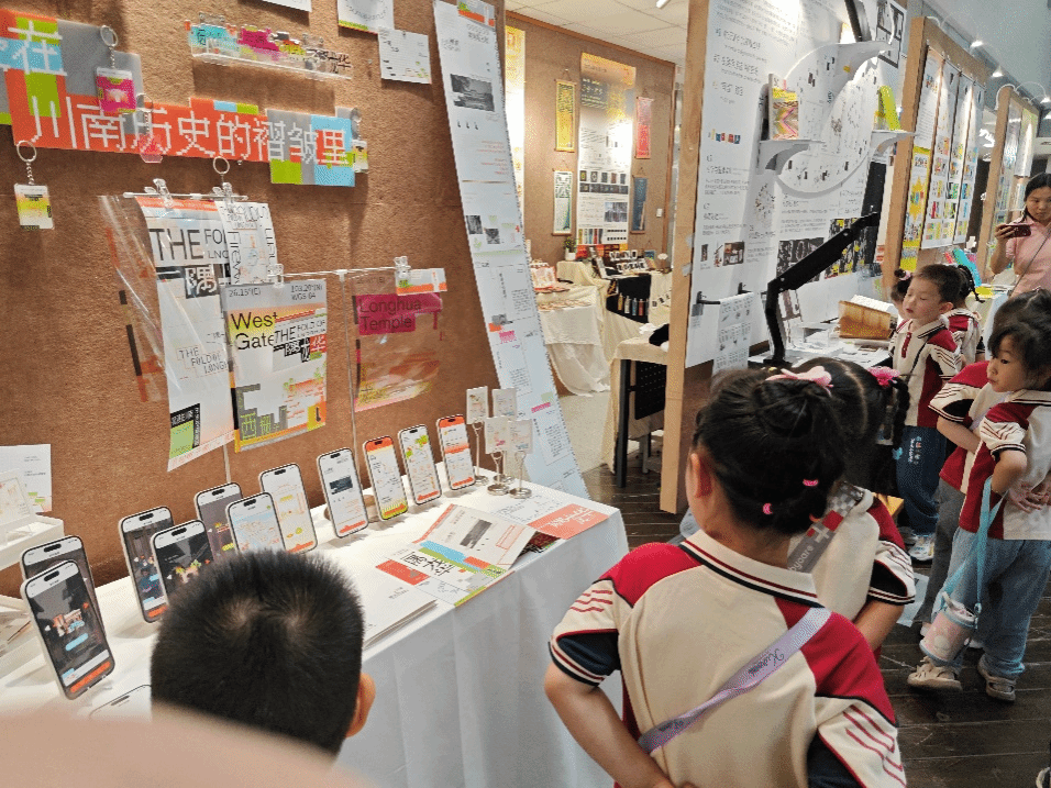 八号教学楼鸟瞰模型,参观实体斗拱模型。近期展出的毕业生作品也吸引了小朋友们的极大兴趣,"我的画以后也要放在这里!"