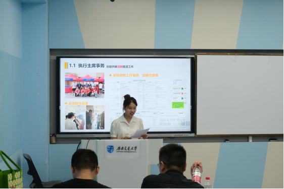 2024-2025学年研究生会述职答辩,在九里校区J4205教室圆满举行。本次活动共19名优秀学生干部及干事参评,由研究生会指导老师王威老师担任评委。