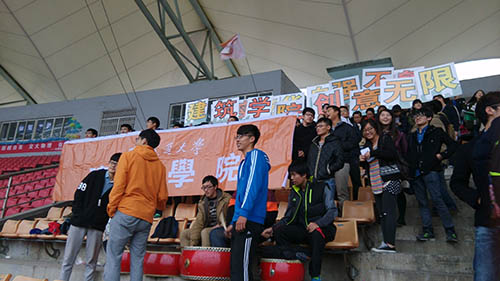 看台上的拉拉队在为参赛运动员们鸣鼓助威!