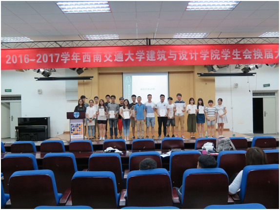 建筑与设计学院学生会换届大会在建筑与设计馆学术报告厅举行。学生工作组孔翔榆老师、方翰老师、黄赫中老师、罗克乾老师等出席本次换届大会。
