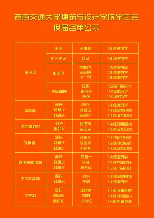 首先,学生会主席张璐同学代表上一届学生会作了2015-2016年度建筑与设计学院学生会总结报告。回顾了过去的一年,是学院快速发展的一年,学院很多方面都发生了很大的变化——不仅规模扩大了一倍,更是实现了建筑类与设计类的快速融合。学生会在此也发挥了重要作用。同时对过去一年所做的努力和存在的不足作了总结,并提出了相应的改正建议。张璐同学在发言中提出,学生会应该顺应时代做出变革和反思,才能在学院老师的领导下更好的为同学服务,提升自身价值。
