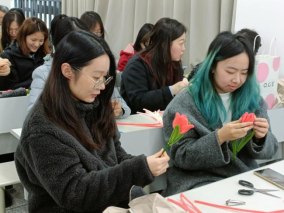 随后,为了向全体女性劳动者致以节日的祝福,全体党员和积极分子共同参与了手工编织花朵的活动。在编织过程中,大家充分发挥创造力,用材料编织出各式各样的花朵,有的色彩鲜艳、栩栩如生,有的造型独特、富有创意。一束束精美的花朵逐渐在大家手中诞生,凝聚着大家对女性劳动者的致敬与赞美。活动现场,大家互相交流编织技巧,气氛温馨而热烈。