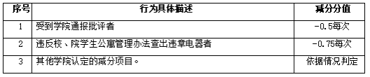 2.减分项目主要针对学生出现违纪违规行为,但尚未达到处分标准时,对其进行发展性评价成绩减分,减分上限为3分。