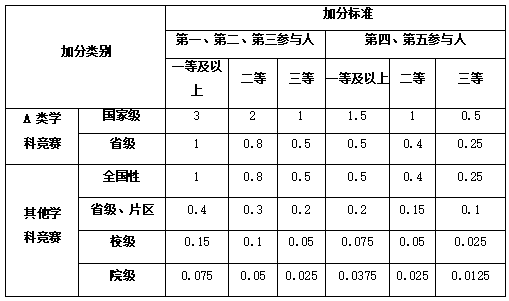 注意:参评学年内2次分别达到本项加分条件,可累计加分,但本科期间以上类别加分仅可申请加分1次。