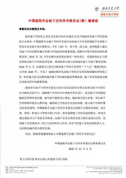 中国建筑学会地下空间学术委员会(筹)