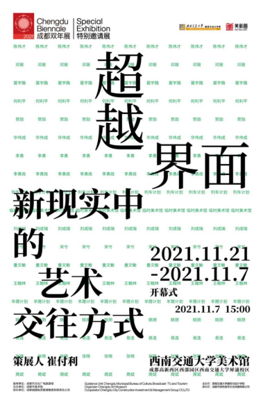 展览邀请了国内19位(组)艺术家参与,他们分别是陈伟才、邓筱、葛宇路、何利平、贺勋、华伟成、李勇、李勇政、列车计划、临时美术馆、刘成瑞、宋兮、童文敏、王翰林、羊蹬计划、姚朋、易连、张晓、周斌。每一位(组)艺术家以不同的方式回应着展览主题“超越界面”,他们有的强调个体与他者的关系建构;有的则是自我为敌,克服某种惰性经验;有的艺术家则是注重与现实与现场的在地关联。比如焦兴涛发起的“羊蹬计划”项目,以一种协商、参与的方式与贵阳羊蹬镇的村民共同发起了一场在地性的艺术实践。“时速120公里大浦当代艺术馆列车计划”在正常行驶的往返西宁、成都两地的k1058/1060次列车上实施。强调对艺术活动过程预设的颠覆和对未知的执念,让每一个个体跳出自我熟知和依赖的经验系统,从“舒适区”踏入陌生的“危险之地”。同样作为项目,临时美术馆以“打包一座美术馆”的方式来回应即将面临拆迁的无奈现实。
