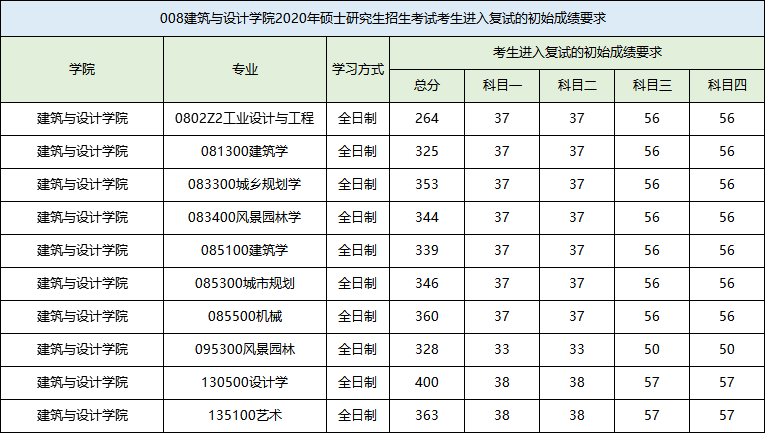 各专业非专项计划的考生,初试成绩达到下表中对应专业的成绩要求,方才具备复试资格。