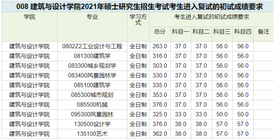 各专业非专项计划的考生,初试成绩达到下表中对应专业的成绩要求,方才具备复试资格。