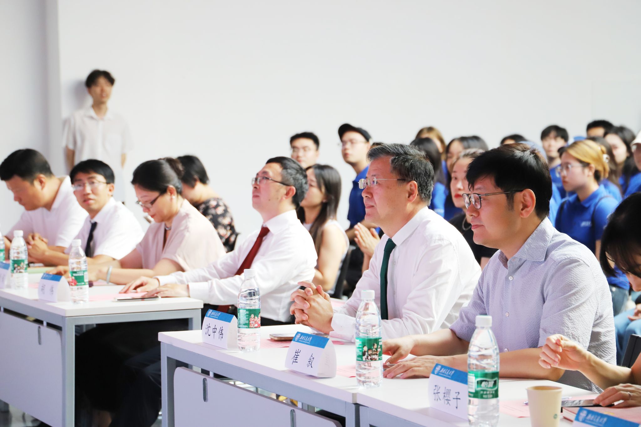 党委书记胡伟、执行院长沈中伟携全体班子成员、各系领导、各科室相关人员、教师代表、2024级新生参加典礼。典礼由党委副书记刘一杰主持。