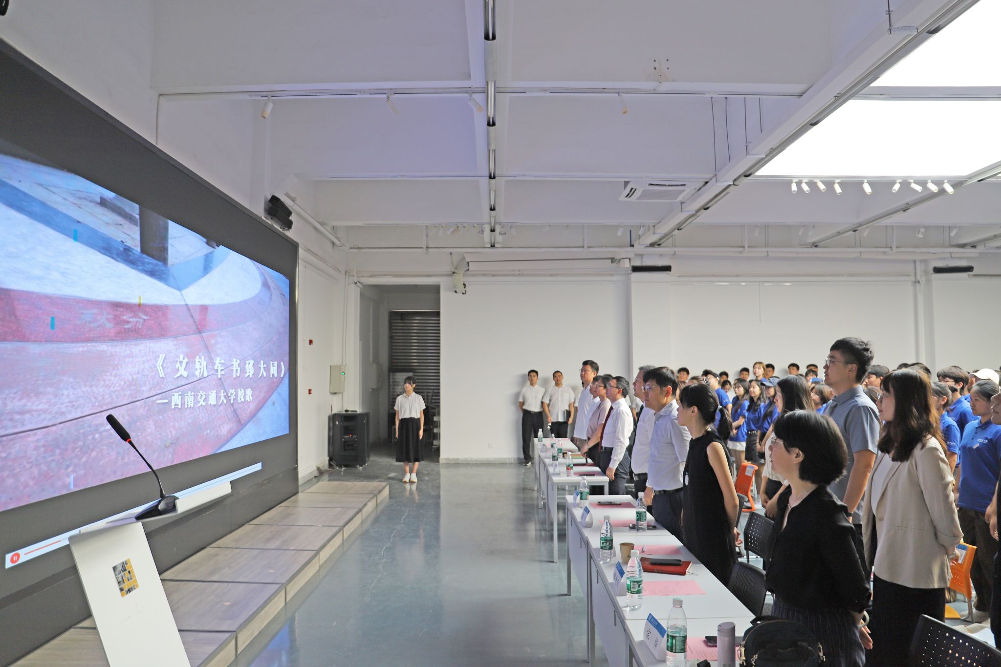 最后,全体师生起立,共同奏唱校歌《文轨车书郅大同》。校歌旋律激昂,歌词振奋人心,表达了交大人对祖国的热爱和对未来的美好憧憬。随着校歌的结束,本次开学典礼暨师生见面会也圆满落下帷幕。