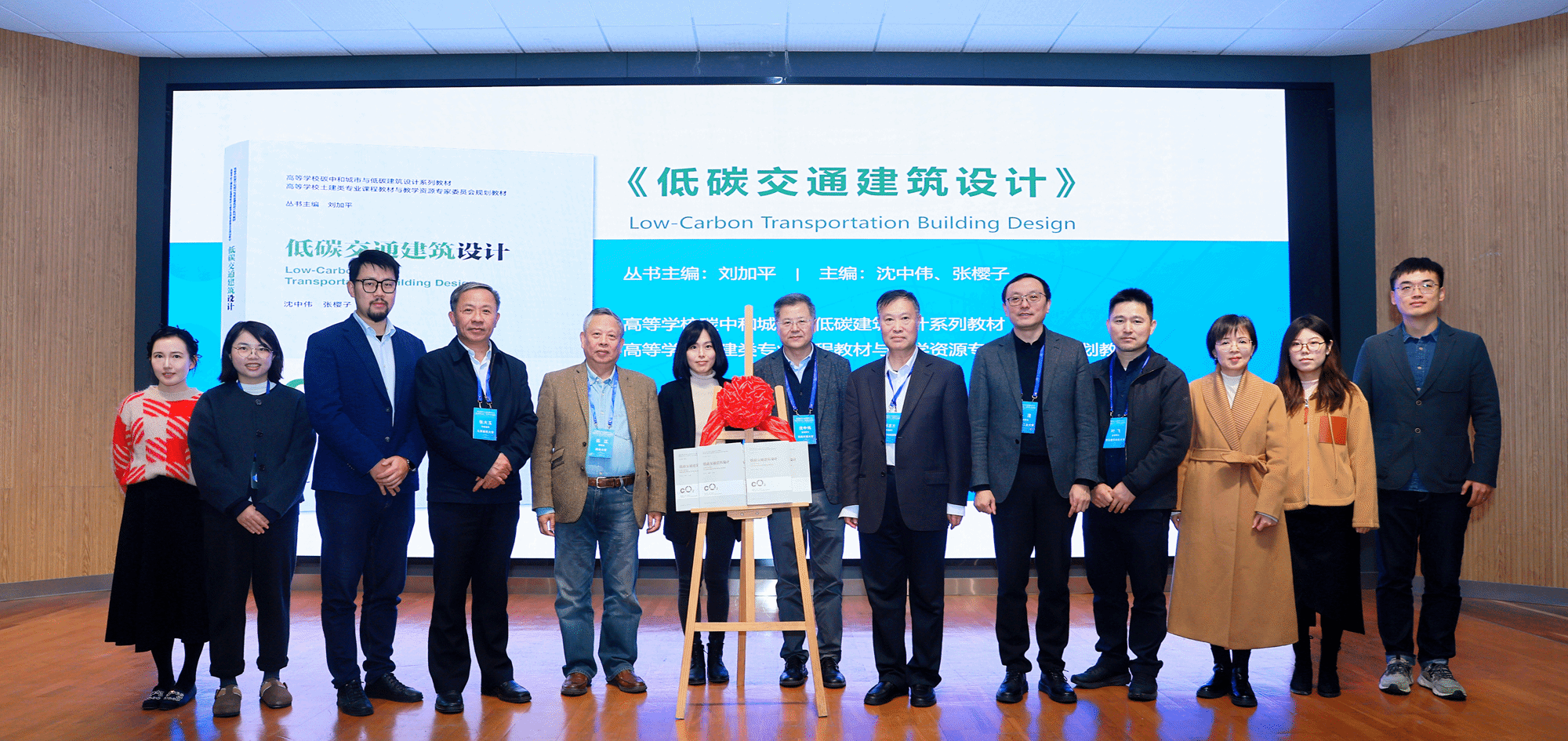 随后,在中国建筑工业出版社教育教材分社副社长陈桦主持下,《低碳交通建筑设计》教材的首发仪式隆重举行。何志方与伍江共同为教材揭幕,张大玉、孙澄、叶飞以及教材编写组全体成员共同见证了这一重要时刻。该教材的出版将为推动我国低碳交通建筑设计领域的教学与研究提供有力支持。