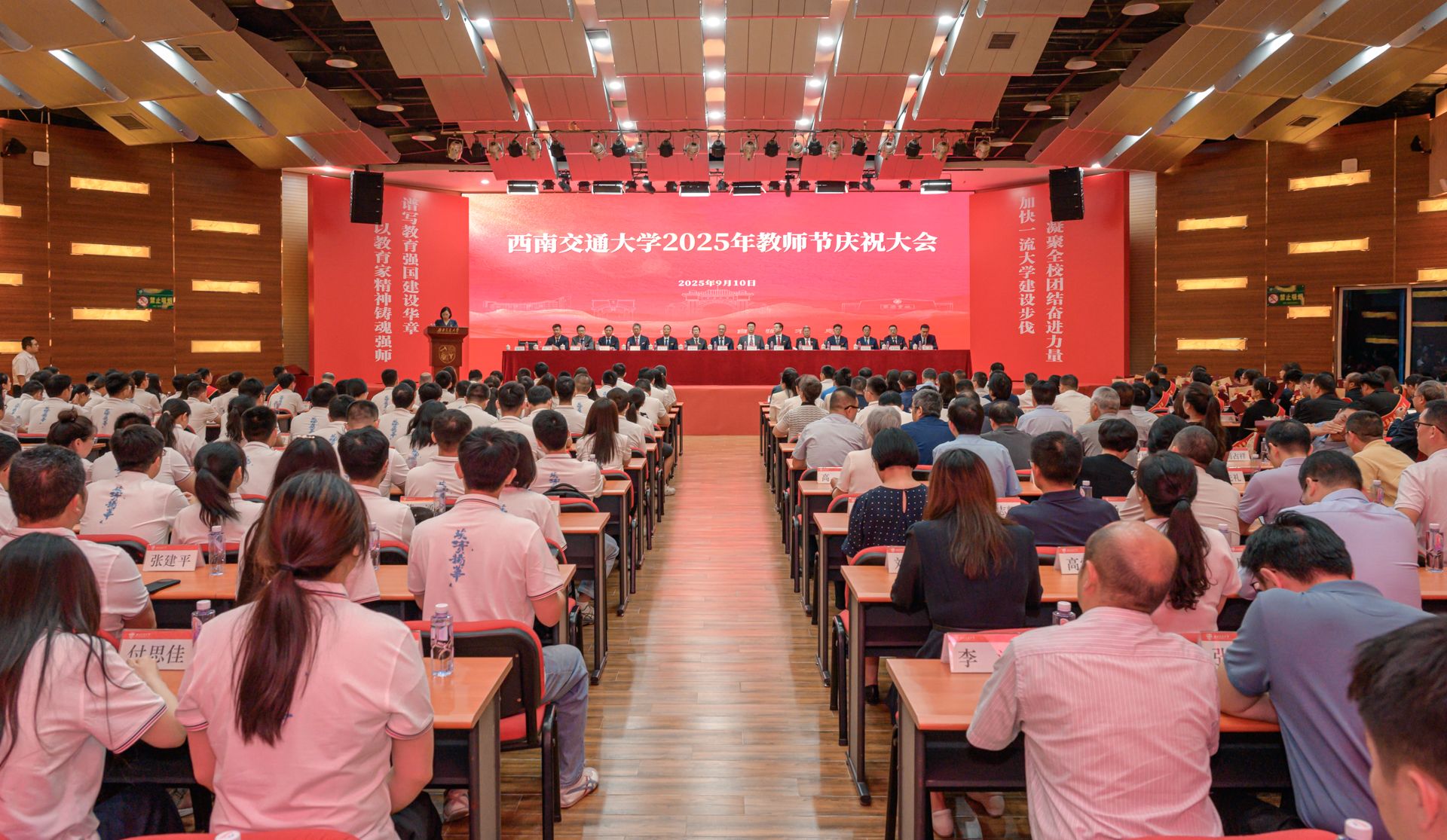 在九里校区国际会议厅隆重举行教师节庆祝大会,表彰在教书育人等各方面取得突出成绩的先进集体和优秀个人。
