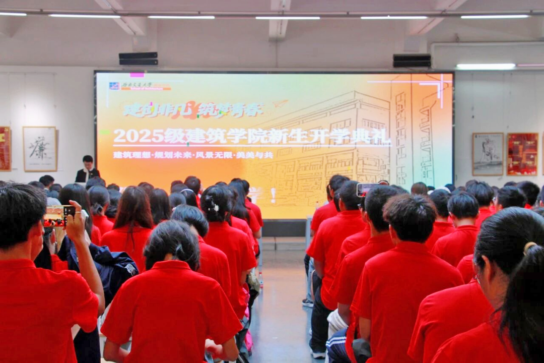 涌现出了佘畯南院士、彭一刚院士等杰出前辈,以及众多在国内外建筑领域贡献卓越的院友,他们是学院的骄傲,也是新生前行的灯塔。今天的中国,建筑行业正在向更高的层次转型,需要好城区、好房子、好环境,需要好规划、好设计、好艺术,以及与之相匹配的好教育,需要一大批适应高质量发展的高层次人才。希望同学们与时代的发展同频共振,抓得住机遇,找得到风口,善于塑造社会发展的内生动力,从而获得时代给予的红利。同时,沈院长向同学们提出三点期望:一是胸怀理想,融入家国。将个人成长汇入民族复兴的伟大进程,以科学思维与人文关怀回应时代命题。二是学思践悟,深耕实干。建筑是一门需要用手思考、用脚丈量的学科。希望学生们既仰望星空,更脚踏实地,在实践与思考中稳步前行。三是全面发展,超越自我。努力成为德智体美劳全面发展的新时代建筑人,精专业、广涉猎、强体魄、重合作,真正不负时代、不负自己。沈院长还祝愿新生们秉持“竢实扬华,自强不息”的交大精神,在这片沃土上播种梦想、脚踏实地、收获未来!