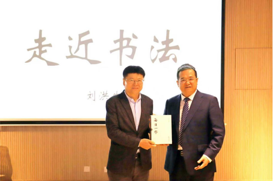 在师生的见证下,沈中伟院长接受了刘洪生向学院赠送的书法新著《每日一字》。该书以每日精讲一字的形式,深入浅出解析汉字源流与书写技巧,兼具知识性与实用性,为师生研习书法提供了宝贵的学习资料。现场的师生为此报以热烈的掌声。