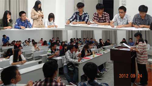 “建言杯”新生辩论赛第一场在西南交大犀浦校区建筑馆X8526如期打响。此次比赛邀请到了宁鹏,周庆,肖洒,马维思,陈蒋靖5位往届的优秀辩手作为评委出席。
