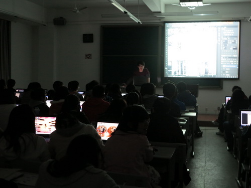 首先,做讲解的是陈熙同学,在PS软件中,陈熙同学非常详细地讲解了几类制作美轮美幻的效果的方法和流程。整个演示过程中,他重点表现了PS软件中各个功能之间的重要区别、联系和配合,并强调了每个功能的优点与缺点。观众们则通过投影仪清晰的看到了演讲者的每一步操作。经过记者调查,初学者反映通过陈熙同学的讲解对PS软件有了一个较全面的认识,老用户也感到受益匪浅。