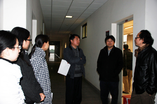 2013年2月25日早上7:45,学院沈中伟院长、王志杰书记、栗民副书记、李异副院长等院领导和学院相关工作人员一起检查了新学期第一讲上课情况,通过检查发现整体教学秩序良好。
