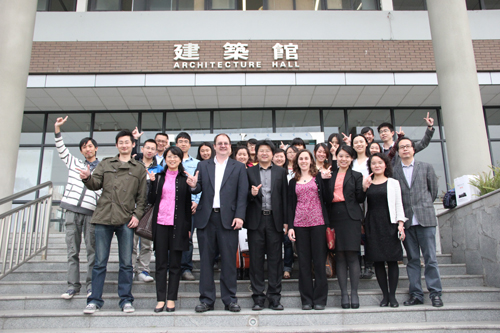 沈中伟院长、党委栗民副书记、崔珩副院长、周斯翔老师以及美国俄克拉荷马州立大学来访教师与 18comic