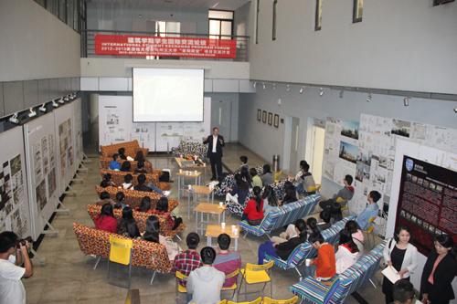 上午10点活动正式开始,裴俊飞、赵浩宇、李莎等同学用全英文的演讲介绍了自己在美国学习及参观的感悟。与大家一起分享了他们学习交流的体会,展示了许多在国外游学时的作品,这些作品不仅有吸引人的外表,更有着新颖的创作理念和独特的设计手法,引起了在场同学们极大的兴趣。同时,他们表示学院组织“暑期殿堂”项目,不仅能为大家提供一个国际化交流平台,为学生创造与国外高校学术交流的机会,还能开阔视野、放开视角。