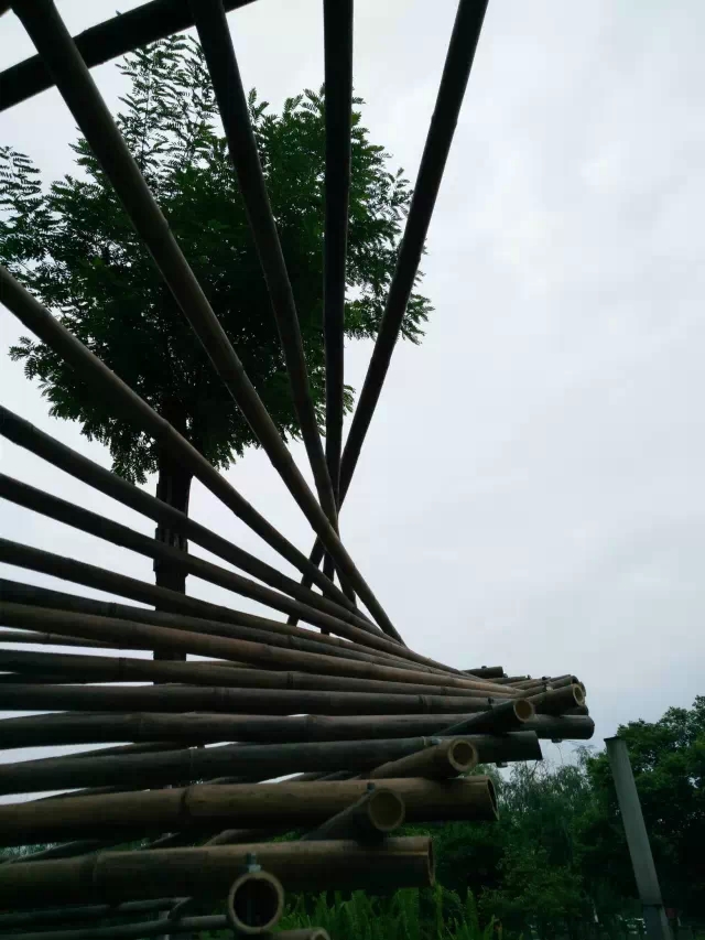 西藏大学这支队伍的作品利用多根竹子的扭曲,展现万物生长的生命力与万物变化的无常。