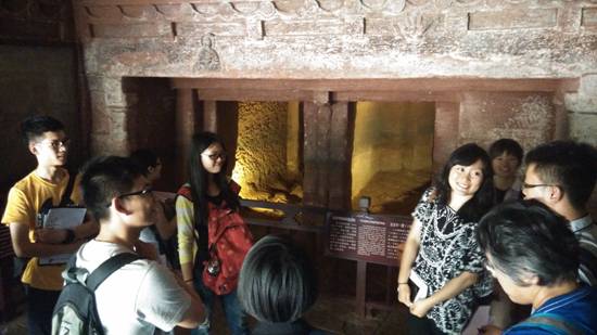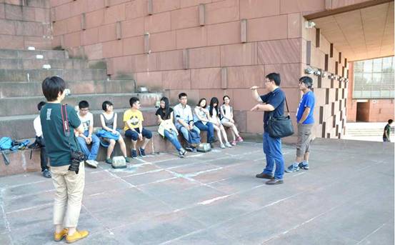现场课(excursion)环节则是在讨论课所形成的认知背景之下,在成都附近古迹进行的现场教学,旨在让同学们结合亲身的经历,将之前的学习内容发展为更加切身的思考。在每个考察现场,老师先进行简要介绍,并分配任务,让同学们分组调查,然后再回到老师的指引下,进行小组间的交流讨论。