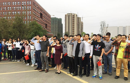 犀浦校区参加了“共迎国庆 凝聚党心”---纪念建国66周年升旗仪式暨党员宣誓仪式。18comic