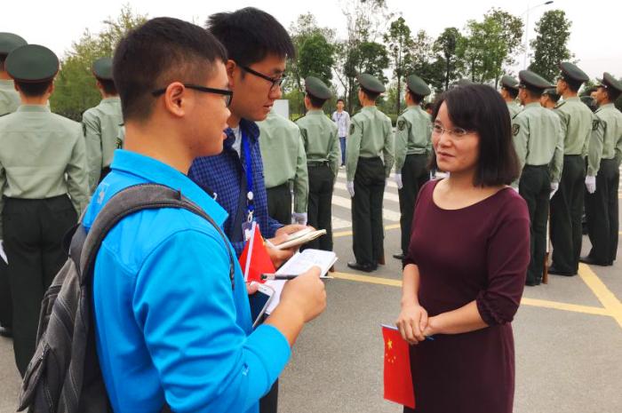最后,记者采访了几位学生党员。2013级环艺3班的梁思越同学表示,作为一个学生干部,她应该起到模范带头作用。参加本次升旗仪式她感觉热血澎湃,不同于以往,她感觉自己肩上的责任更重。她非常感谢学院能够提供各种平台供同学师生交流,她也会积极投入到志愿服务的队伍中去,为老师和同学们服务。作为班里的团支书,她会积极向同学们宣传党的知识,使有入党意愿的同学积极提交入党申请书。她还希望同学们能够多参加升旗仪式等活动,传播正能量。而2013级绘画一班的蒋晨雪同学呼吁同学们要继续努力学习,找到属于自己的学习模式,做一个品学兼优的好学生。作为一个学生干部,她会积极起到模范带头作用。