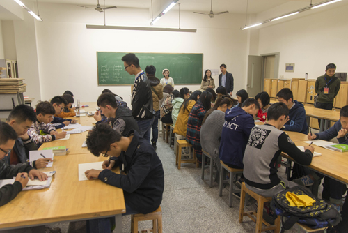 党委倡导发起,多名师生共同组成的“党员服务队之学风教风建设党员服务支队”积极组织新生每天坚持上早晚自习。2015年10月28日,2015级辅导员曾宁莎、段玉全走访了正在学习英语的新生教室。