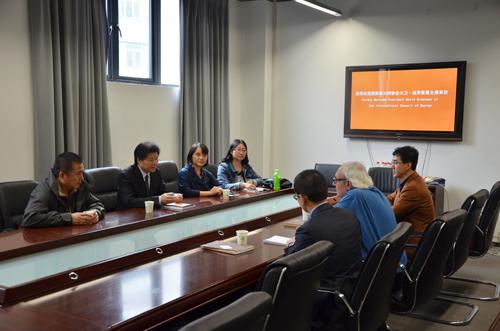 参与国际化交流研讨活动等方面的情况,学院沈中伟院长、党委栗民副书记、院长助理杨青娟副教授及工业设计系系主任黄涛教授与来访的国际设计师协会主席大卫·格罗斯曼、文杰工作室教授级高工文杰进行了热烈会谈。
