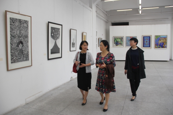 学生作品给予高度评价,对学院专业培养工作给予肯定。学院党委书记栗民,副书记刘一杰及相关工作人员陪同参观展览。