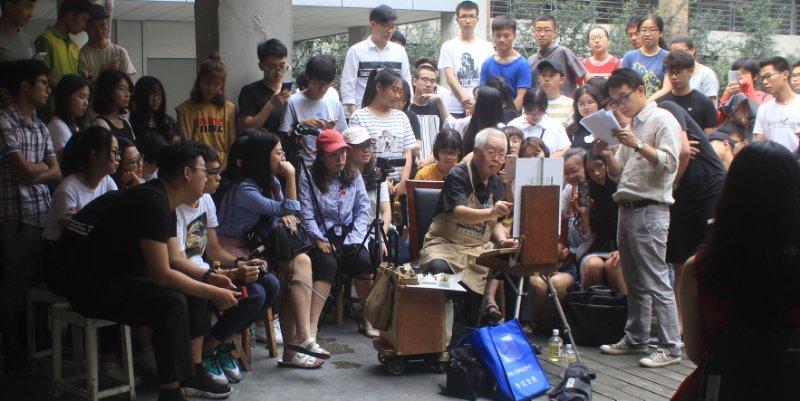 在现场人像写生中,周教授的写生过程是绘画界难得的绘画本体语音的直观的言传身教的过程,对于学习绘画的学生尤其是学习油画的学生来说,是任何印刷品与录像不能代替的,周教授的写生作品的用色、运笔、造型等等都给我们师生留下了深刻的印象。