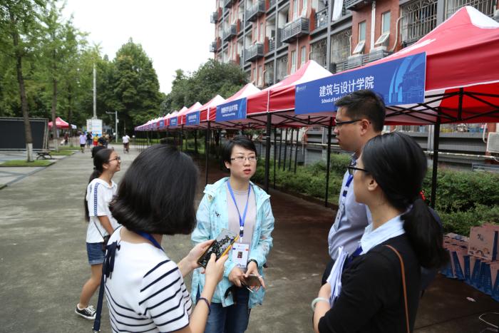 8月29日早上7:00,风雨骤停,阳光和煦,建筑与设计学院的迎新志愿者积极地布置迎新场地,开始了一天的迎新工作。上午8:30,学院迎来了艺术类第一位新生,迎新工作井然有序地推进。