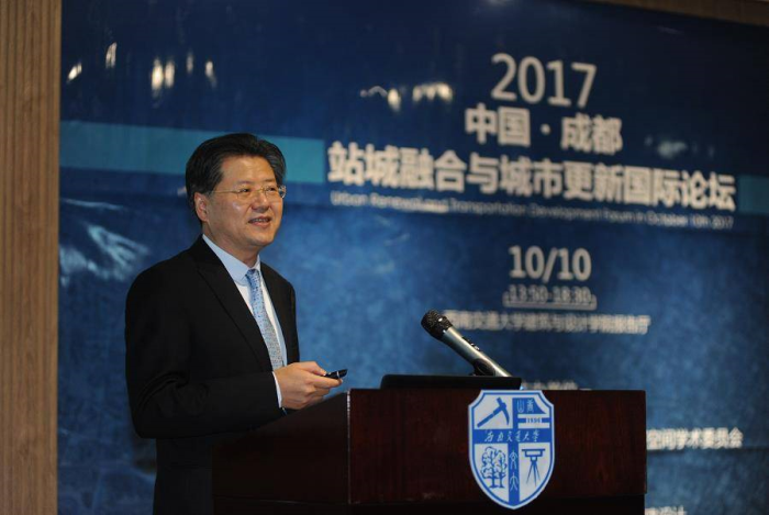 建筑与设计学院党委书记、院长沈中伟,中铁第四勘察设计院集团有限公司副总工程师、总建筑师盛晖,中铁二院中铁集团副总工程师金旭炜,日建设计常务董事大松敦,西南设计研究院执行总建筑师刘艺,戴德梁行成都公司总经理张裕鹏,中铁二院建筑工程设计研究院总建筑师毛晓兵,日建设计执行董事兼日建设计城市工程公司副社长冈田亨嗣,北京工业大学建筑与城市规划学院李翔宇等嘉宾,与成都市城乡建设委员会副主任王建新、成都市规划管理局副局长万小鹏、中国建筑学会监事顾勇新,以及来自全国各地、各相关行业的专家学者,共同走进西南交大建筑与设计学院学术报告厅,为到场的听众分享了众多国内外TOD模式建设的有益经验。