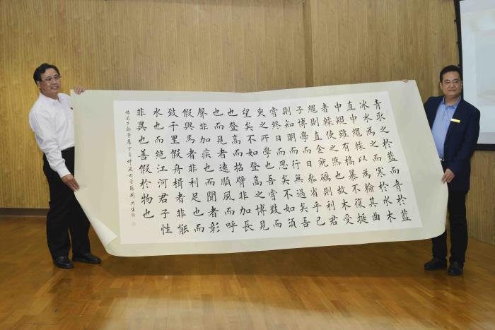 最后,刘洪生向在座师生赠送了自己的书法作品和字帖,并认真回答同学提问。讲座在掌声中迎来了圆满的结束。