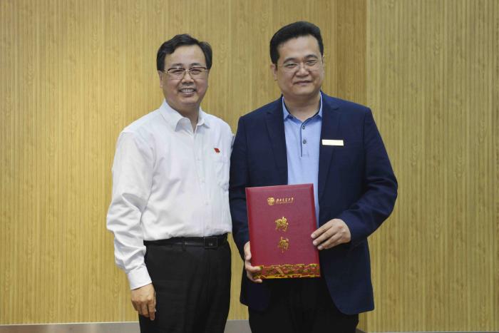 王顺洪首先对刘洪生教授的加盟表示崇高的敬意和衷心的感谢。他表示,刘教授的加盟定将促进艺术类学科加快发展,同时祝刘教授的报告会圆满成功。随后,王顺洪为刘洪生教授颁发了聘书,正式聘请书法家刘洪生为18comic