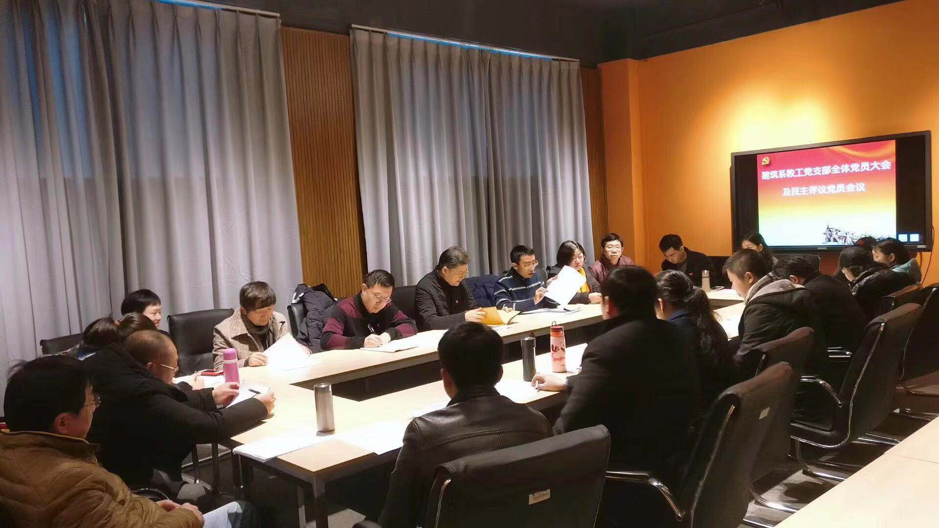 按照中央、省委、学校等关于“召开基层党组织组织生活会和开展民主评议党员工作”规定要求。2019年2月28日上午11:30,在建筑与设计学院第一会议室召开了建筑系教工党支部全体党员组织生活会。
