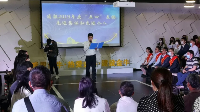 现场,金牛区对2019年度“五四”先进集体和先进个人进行了表扬通报并颁奖。其中,先进个人代表包括优秀青年干部、优秀青年人才、优秀青年志愿者、优秀共青团干部、优秀共青团员五类一共50人,先进集体代表包括五四红旗团委、五四红旗团支部(总支)、青年突击队标准三类一共30个。