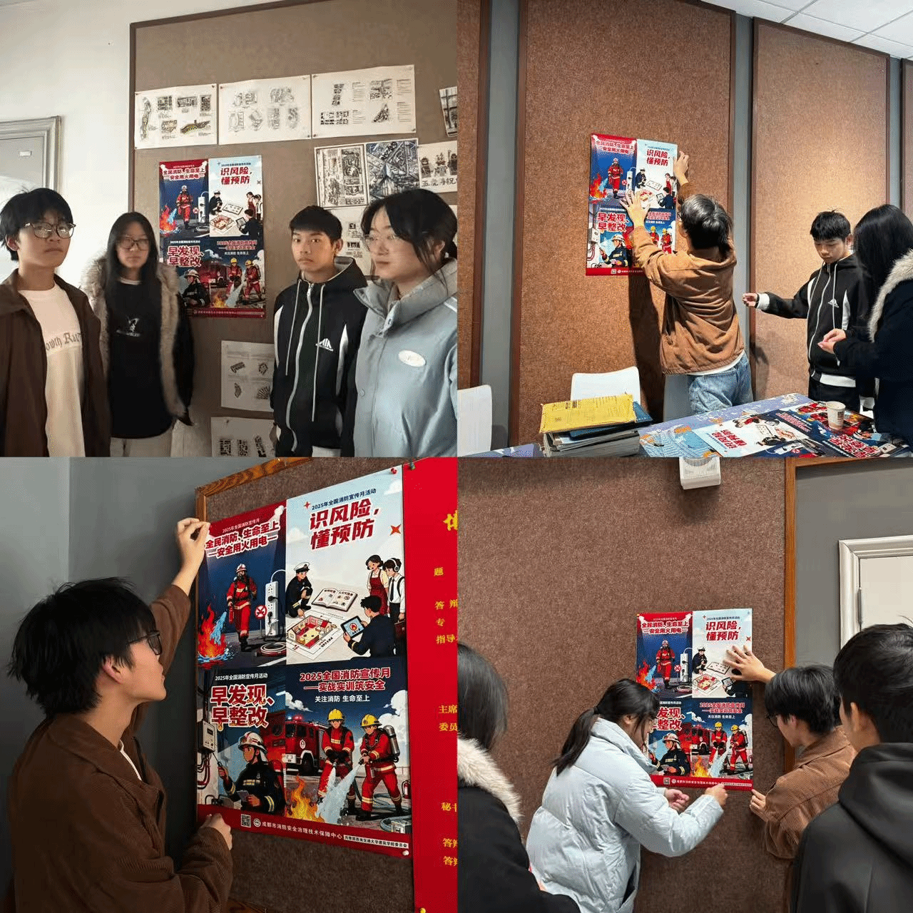 本次宣传活动中,学生园区自管会的同学们在八号教学楼逐层检查公共空间并张贴警示教育海报;同时,各年级辅导员老师们走进学生园区,向同学们进行宿舍防火用电安全教育,并和同学们一起张贴《 18comic