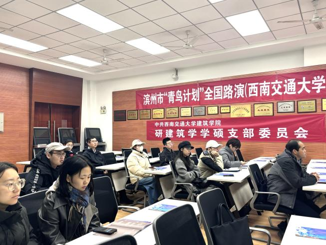 犀浦校区四食堂321教室开展山东省滨州市“青鸟计划”全国路演、人才政策及实习就业推荐活动,该活动为共青团滨州市委主办,旨在推动四川省大学生了解山东省“青鸟计划”,拓宽信息面,了解多省市人才引进政策,同时促进支部党员同志高质量就业。