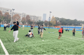 九里校区足球场开展了“烽火接力·青春同行”——趣味运动会暨抗战精神沉浸式学习活动。