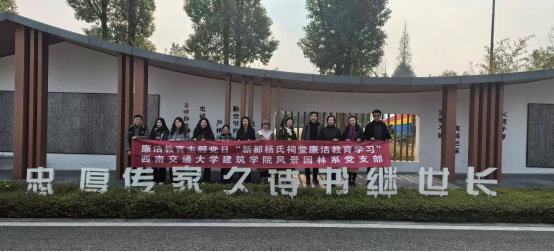 风景园林系党支部组织开展了以“传承清廉文化,涵养清正作风”为主题的党日活动,赴成都市新都区杨氏祠堂开展廉洁教育学习。